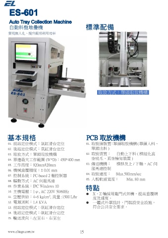 03. 取放方式:單頭取放機構 02. 取放裝置: 自動上下料 ( 模組化真 06. 工作高度:920mm±20mm 特點