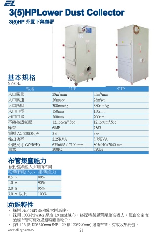 粉塵顆粒大小 集塵能力 • 採用 2HP 馬達及高效鼓風機,集塵效率高