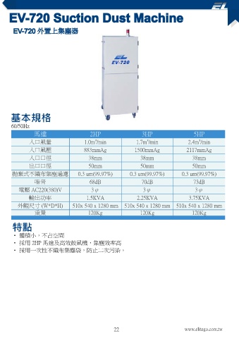 3(5)HP 外置下集塵器 EV -720 外置上集塵器