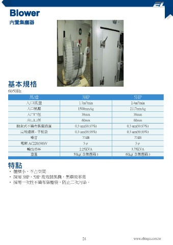 • 採用 3HP、5HP 高效鼓風機,集塵效率高